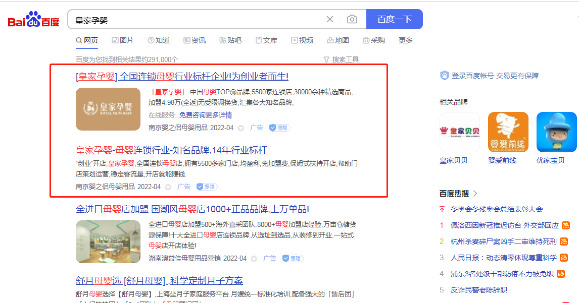 投放目標: 通過搜索推廣提高公司知名度,提升品牌口碑,獲取更多加盟資源。